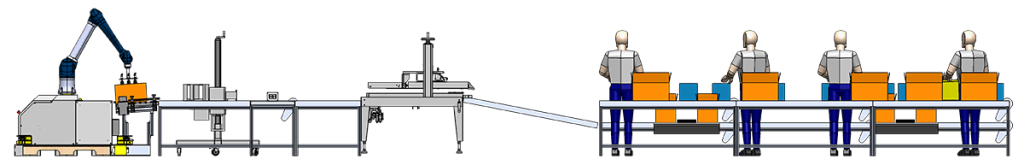 With the goal being complete automation of the ergonomically challenging tasks, the solution needed to handle the remaining end of line processes once the cases were filled.